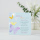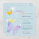 Borboletas deliciosas e coloridas em tons amarelos, laranja e roxos + rolhas elegantes + fundo azul claro projetado em Convites de chá de panela personalizados. Você e seus hóspedes vão adorar o tema sofisticado e branco da borboleta design! Todo o texto de amostra pode ser totalmente personalizado com sua própria redação.
