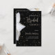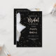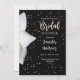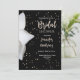 Chá de panela White Magnolia Elegante Black Convite para homenagear a Noiva. Projetado com uma flor branca brilhante de magnólia sobre fundo preto com texto branco e confete dourado. O texto do convite inclui: Chá de panela, Nome da Noiva, Data do Evento, Hora, Nome do Local e Endereço. O verso é decorado numa flor de magnólia branca clara e séptica, sobre fundo preto, com confete dourado. O texto inverso inclui: Detalhes de RSVP e Detalhes do Registro de Marca. Para personalizar, simplesmente insira seu texto em nosso modelo fácil, substituindo o exemplo. Este Chá de panela está disponível para impressão e também pode ser baixado.