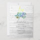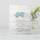 Convite para chá de casais florais de provando de vinho com horta e azul, com penas de pavão concebidas para serem rápida e facilmente personalizadas. A foto no verso é opcional. Se você a remover, role para baixo até a parte inferior de "Personalizar este modelo" e clique em "Editar usando a ferramenta Design". Na Ferramenta Design, você pode editar, dimensionar, excluir ou mover qualquer texto ou elemento design.