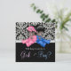 Convites de chá de revelação de gênero em damask preto para menino e menina afro-americanos. Este convite de chá de revelação de gênero em damask preto é facilmente personalizado para o seu evento, adicionando detalhes do evento, estilo de fonte, tamanho e cor da fonte e texto.