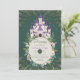 Uma ilustração encantadora e aquática de um castelo encantado, mágico, da princesa dos contos de fadas, num esquema cor rosa, roxo e branco, num cenário de floresta estilizada encantada, assim como um quadro floral e botânico com rosas e outros verdes, enfeita este elegante e adorável convite para chás de menina. Perfeito para comemoração de primavera, verão, outono ou inverno, eventos de Páscoa, fête de jardim de verão, chá de fraldas piquenique charcado, comemoração de Natal ou comemoração de um ano em homenagem a uma mãe que ama o tema da princesa de conto de fadas, um castelo de princesa, o tema da floresta encantada e uma atmosfera mágica e encantada dos livros de histórias.