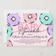 Este convite de chá de fraldas simples e fofo é perfeito para um evento doce. Apresenta ilustrações de rosquinha espirradas desenhadas à mão em verde-menta, rosa-pinto-pinto-pinto-pinto-lilás e preto com a frase tipográfica, "Baby Sprinkle", sobre um fundo rosa-pastel. É adorável, divertido, brincalhão e moda. ***NOTA DE DESIGN IMPORTANTE: Para qualquer solicitação de design personalizada, como solicitações de correspondência de produtos, alterações de cor, mudanças de posicionamento ou qualquer outra solicitação de alteração, clique no botão "MENSAGEM" ou envie um e-mail ao designer diretamente em lafemme.art@gmail.com. Você pode até enviar um e-mail para ela solicitando um design completamente personalizado e novo.