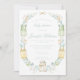 Celebre a chegada da sua pequena com nosso elegante e adorável convite de chá de menina botânica. Adorado com uma coroa verde pastel e amarela entrelaçada com roupas de menina, folhas de eucalipto, arcos e flores, este convite dá o tom perfeito para uma celebração de primavera ou verão cheia de alegria e antecipação.