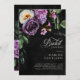 Convites Chá de Script Floral Elegante Preto e Lavanda