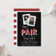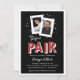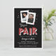 Perfeito para amantes de pôquer ou chás de casamento noturnos de casino, nossos convites para chás de casamento de casais temáticos de casino apresentam um par de cartas de jogar com fotos e iniciais do casal, e "o par perfeito" embaixo em letras retrógradas ao estilo de Vegas. Adicione os detalhes do chá dos casais usando os campos modelo.