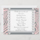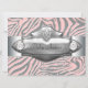 Chá de fraldas de zebra rosa-prata, convite para a menina zebra. Adicione seus detalhes à frente e atrás, simplesmente escolhendo o botão laranja "Personalizar!" para começar a adicionar detalhes do evento, estilo da fonte, tamanho da fonte e cor e texto. Observe que todos os designs de convite que você encontrará no Zazzle são gráficos impressos em estoque de papel plano sem joias reais, arcos, levantados, gravados em relevo ou peças ou peças adicionadas.