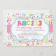 Este convite adorável do chá de fraldas do tema do alfabeto é perfeito para um chá de fraldas doce do tema do alfabeto de ABC!