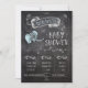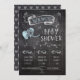 Comemore a próximo chegada de seu pacote pequeno de alegria, com este quadro que você é convidado a um convite do chá de fraldas, caracterizando um elefante dos azuis bebés que toca trombeta sobre o evento. Adicione onde, quando e os detalhes no modelo simples de usar forneceram. Um convite bonito, brincalhão com um coração branco do giz que repete o teste padrão na parte traseira