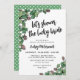 Quatro folhas trevas chá de panela com chá vamos a noiva sortuda em um roteiro encantador com ilustrações desenhadas à mão de quatro folhetos e flores de trevo rosa. chá de panela de Dia de São Patrício com trevos, flores e fontes encantadoras.