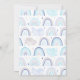 Cartão de modelo de convite para chás de fraldas, bonito e branco, com uma mão pintada de arco-íris azul com estrelas à volta. O texto diz "depois de cada tempestade há um arco-íris". O padrão na parte de trás do cartão tem nuvens e gotas de chuva. Este design moderno é perfeito para o chá de fraldas milagroso de um rapaz, especialmente depois de uma mãe ter passado por um aborto espontâneo antes.