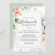 Este convite de chá de lua, dourado geométrico, é perfeito para um chá de casamento moderno. O design apresenta uma folhagem botânica, pintada à mão, verde e dourada, com flores cor-de-rosa, pinceladas, brancas, enfeitando uma elegante estrutura geométrica.