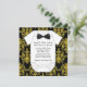 Adorável damask amarelo e preto, arco preto gravata preta, chá bebê negro. Este convite para chás de fraldas amarelo e preto giro é facilmente personalizado para o seu evento, simplesmente escolhendo o botão "Personalizar!" para começar a adicionar detalhes do evento, estilo de fonte, tamanho de fonte e cor e texto. Observe que todos os designs de convite que você encontrará no Zazzle são gráficos impressos sem joias reais, arcos, levantados, gravados em relevo ou peças ou peças adicionadas.