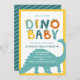 O Convite para Chá Dinossaur Newborn Baby Boy tem uma fonte de dino especial, divertida, onde cada letra é decorada com picos de dinossauro. A paleta de cores é moderna e fresca e você pode personalizar o texto inteiro para corresponder ao seu chá de fraldas ruidoso