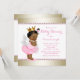 Chá de fraldas de anjo étnico com adorável menina de anjo étnica vestindo calças cor-de-rosa, asas, halo e cordas de pérolas em um fundo de pérolas cor-de-rosa e dourada. Este convite para chás de fraldas cor-de-rosa e anjo-ouro, bonito e elegante, é facilmente personalizado para o seu evento, adicionando os seus detalhes no estilo de letra, cor e texto da sua escolha. Você também pode alterar a cor de fundo. Design impressa sem nenhum arco brilhante de pérolas real, etc.