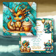 Um lindo dragão de chibi branco, de ouro e turquesa teal chibi, convites de festas de aniversários do menino. Deixe a imaginação do seu filho brilhar com estes convites de aniversário de ficção científica super legal!