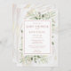 Possui folhas de aquarela delicadas em pântanos bonito de mármore. Este chá de bebê na moda ou convite de aspersor pode ser personalizado com seus detalhes especiais de celebração na tipografia elegante rosa de ouro. Projetado por Thisnotme©