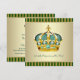 Emerald Green Gold Corwn, bebê, chá de príncipe. Elegante, verde e coroa dourada, pequeno príncipe, chá. Este belo convite para chás de fraldas verde e ouro é facilmente personalizado para o seu partido ou evento, simplesmente escolhendo o botão laranja "Personalizar!" para começar a adicionar os detalhes do evento, estilo de fonte, tamanho de fonte e cor e texto. Observe que todos os designs de convites e cartões que você encontrará no Zazzle são gráficos impressos sem joias, arcos, levantados, gravados ou acrescentados.