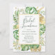 Este sofisticado convite à noiva tropical apresenta palma verde e dourada, filodendron e folhas de samambaia. Um quadro de ouro elegante destaca o texto verde escuro. Dourados espalhadores acentuam esse exótico design botânico e trazem um pouco de moderno capricho ao convite. Este convite à oásis da ilha é perfeito para qualquer luau, praia ou chá de chá de panela com tema tropical.