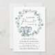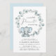 Um convite para o chá de um bebê bonito, com "A Sweet Little Peanut Is On Your Way" na tipografia moderna e um roteiro de na moda com um inchaço cardíaco, e uma ilustração com aquarela de um elefante bebê azul pastel em uma coroa de verde-sábio eucalipto verde-verde-verde.