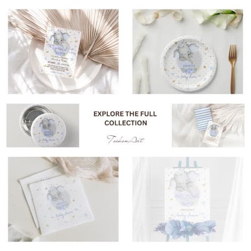 Chá De Gemidos De Elefantes Dourados Azul E Moles De Aquarela Convidam. Elefante bonito e sonolento na lua, com detalhes reluzentes à volta, como estrelas e pontos de ouro, borboletas-reluzente, roteiro elegante e flores azuis-de-cor-d'água. Este convite é uma mistura de estilos boho, modernos e elegantes. Não se esqueça de descobrir a coleção de cheios.