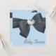 Arco elegante com um bebê do centro de diamante, convite azul e chá de fraldas preto. Este belo convite para chás de fraldas preto e azul é facilmente personalizado para o seu evento, simplesmente escolhendo o botão "Personalizar!" para começar a adicionar detalhes do evento, estilo de fonte, tamanho de fonte e cor e texto. Observe que todos os adesivos, cartões e designs de convite que você encontrará no Zazzle são gráficos impressos sem joias reais, arcos, levantados, gravados, ou peças ou peças adicionadas.