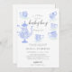 Modelo de convite de festas de chá moderno, elegante e chic, com ilustração de um elegante conjunto de chá azul com delicadas aberturas de macarrão-chico (este é um efeito digital). O título, "A Sweet Little Boy is Brewing", na caligrafia moderna e floresce delicado. Perfeito para uma festa de chá de chá de fraldas de menino elegante, elegante e moderno, um chá de fraldas de festas de chá e para mães adorarem caligrafia e tipografia clássicas de roteiro de rico. Personalize cada linha de texto.