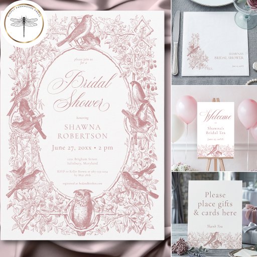 Elegant Pink Chinoiserie Nature Bird Bridal ShowerCriado por Kathe Santillo