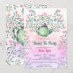 © Socialite Designs & LICENCORS. Convite elegante de bule de chá e floral. Um convite maravilhoso para chá de festa.