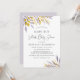 Quando amigos e familiares não podem estar juntos, comemore a futura mãe com um chá de fraldas virtual online. Este convite para chás de fraldas virtuais para bebês apresenta lindas folhas florais de cor aquosa em lavanda, roxo e ouro, e "Chá de fraldas virtual" escrito em um roteiro de na moda. Você pode personalizar facilmente as informações de gênero e chá on-line do bebê, incluindo um link de acesso on-line, informações de registro, onde enviar cartões e presentes ou a opção de abrir on-line e enviar posteriormente, e um contato para obter mais informações.