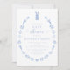 Explore o nosso encantador convite para chás de bebês mostrando um charmoso coelho Páscoa azul cercado por uma coroa de flores e cenouras de primavera. Esta design adorável é perfeita para acolher o seu pequeno com alegria e capricho.