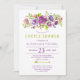Modelo de convite para chá de casamento elegante, russo, com um vibrante boho, magenta rosa-quente, lilás, violeta roxa e buquê rosa-pincel com limão e folhagem verde-férn e escrita. Preencha suas informações nos pontos, Você pode optar por personalizá-las alterando as fontes, as cores das letras ou a cor do plano de fundo no verso. — O convite é adequado para primavera ou floral chic de verão | festas modernas de chás de casamento de jardim ou janto de ensaio. — Se você precisar de assistência com o design, por favor, entre em contato comigo!