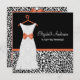 Faça uma declaração de moda com esses convites de chá de panela de impressão preto e branco-leopardo com um vestido de noiva moderno em um cabide decorado com uma fita Koi Orange feminina presa em um arco bonito. Este convite para impressão de animais quentes pode ser personalizado adicionando o nome da noiva a ser, as cores do casamento e as informações da festa às áreas de texto de modelo personalizáveis. Este convite para na moda faz parte da Coleção de Cores da Moda de Queda de 2013. Imagem impressa em formato plano, não faixa real.