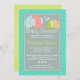 O único tema do safari moderno com um padrão azul brilhante pontilhado ao fundo, ilustrado com dois elefantes, a mãe e o bebê. As cores principais são: verde, azul, cinza, rosa e verde. Ideal para chá de fraldas de bebês. Alguns elementos de BabaPuff.***OBSERVE que se você alterar a fonte ou o tamanho da fonte, ela pode alterar a forma como o convite impressão. Ele será impressão como você vê no seu monitor. Não verei a sua placa depois de a solicitar e o Zazzle NÃO editará nada (digitar, alinhamento, etc.). Mostrado aqui em papel básico