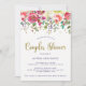Estes casais bonitos regam convites caracterizam um design floral cor-de-rosa, roxo, e verde bonito da aguarela, com confetes e tipografia do olhar do ouro do falso.