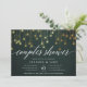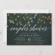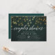 Nossos casais elegantes convites para chás em verde-floresta e ouro apresentam um fundo verde-caçador escuro com cordas de folhas falsas de ouro no topo, e "chá casal" na tipografia de gráficos de caligrafia. Personalize com seu chá e detalhes do registro abaixo em letras brancas. Um convite elegante em cores ricas para chás de panela de outono, outono ou inverno.