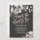 Chá moderno de quadro negro para a mãe ser um convite chá de fraldas com bonito flores rosa e azuis, colocadas sobre um fundo de quadro negro com uma bela fonte escrita à mão. Sacudir o convite do nosso chá de fraldas para ver uma correspondência de volta para um toque especial extra.