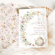 No coração deste design encontra-se um bule encantador, graciosamente adornado com flores silvestres pastéis suaves e delicadas em tons de rosa, blush, lavanda, amarelo e azul. Este motivo requintado é complementado por uma tipografia elegante, adicionando um toque de sofisticação.