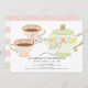 Este segundo/segundo convite de festas de aniversário bonito apresenta um fundo branco com um bule de chá e um par de xícaras de chá. O verso apresenta um fundo branco com listras cor-de-rosa pinceladas. Personalize-o para as suas necessidades. Você pode encontrar produtos correspondentes na minha loja.