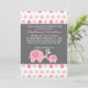 Um produto personalizado para chá de meninas apresentando elefante-mãe e elefante para bebês e bolinhas em cor azul e verde dominada