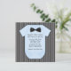 Adorável pinstripe preta, arco gravata preto e azul convite para chás de fraldas. Este belo convite para chás de fraldas pinstripe preto e azul é facilmente personalizado para o seu evento adicionando detalhes de evento, estilo de fonte, tamanho de fonte e cor e texto.