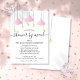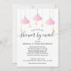 Chá por e-mail convite cor-de-rosa para bebê de longa distância apresentando nuvens cor-de-rosa fofinhas e estrelas ouros bonitinhas em cordas sobre um fundo branco. Este chá de bebê rosa, aspersor, ou casal chá por correio é perfeito para todas as meninas no caminho. Personalize seus detalhes de celebração em tipografia elegante para criar o convite perfeito. Projetado por Thisnotme©