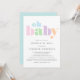 Quando amigos e familiares estão longe, celebre a futura mãe com um chá de fraldas pelo correio. Este convite para chás de fraldas minimamente neutro do gênero apresenta "oh baby" num arco-íris de uma tipografia audaciosa, azul, verde, rosa, roxo e laranja. Você pode personalizar facilmente com os detalhes do chá por e-mail, incluindo informações de registro, onde enviar cartões e presentes, se a mamãe a ser hospeda um evento de transmissão ao vivo ou posta fotos de sua abertura dos presentes, e onde obter mais informações.