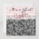 Palha preta, cor-de-rosa, fita branca, renda rosa, bebê preta, convite para chá de fraldas. Convites de chá preto cor-de-rosa. Convites de chuveiro de bebê rosa-preto. Convites pretos rosa. Convites pretos.