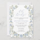 Celebre a alegria da sua chegada com o nosso adorável convite de chá para o bebê. Destacando uma charmosa coroa floral entrelaçada com folhas verdes e flores azuis. Este design elegante define o tom perfeito para uma doce celebração de feiticeiro. Ideal para criar um na moda e um evento sofisticado, perfeito para receber seu filho.