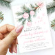 Celebre a chegada da sua pequena com o nosso chique de inverno, o convite de chá para a bebê. Adorado com delicados Enfeites de natal cor-de-rosa pendurados num galho festivo de pinheiros e acentuado com um charmoso arco rosa, este elegante design capta a magia da temporada de férias. Perfeito para um chá de fraldas de Natal confortável, este convite combina encanto doce com elegância eterno de inverno, fazer ideal para celebrações rústicas, bócio ou clássicas de bebês de férias.