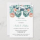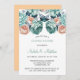 Um arranjo floral de cor aquosa impressionante que inclui turquesa, menta escura, pêssego, e pêssegos e rosas escuros, acentuado lindamente com elementos de diamante e folhagem verde profunda. Perfeito para convites de casamento elegantes!