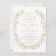 Abrace a chegada de um pequeno com este encantador convite de chá de menina rústica boêmica. O design encapsula a beleza da natureza, apresentando uma coroa floral de rosas selvagens, cor-de-rosa-pincel e cor-de-água verde, que complementa o tema "Uma pequena flor selvagem está a caminho".