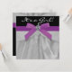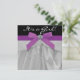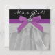 Chamadas de chá de bebê preto e roxo. Adicione seus detalhes à frente e atrás deste adorável convite para chás de fraldas roxo e preto. Observe que todos os designs de convite que você encontrará no Zazzle são gráficos impressos em estoque de papel plano sem joias reais, arcos, levantados, gravados em relevo ou peças ou peças adicionadas.