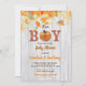 Perfeito para o outono, época de Ação de Graças.Receba este convite bonito agora! Tema: Estação de Ação de Graças: outono, Estilo de outono: Cores Elegantes: Tonalidades brancas, laranja, marrom e amarelo de outono.Gráficos: Fundo de madeira branca, gráfico de abóbora vintage, Watercolor (aquarela) Folhas de outono, fundo de bolinhas Para:Chá de Bebê para Meninos