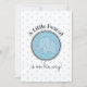 Pequeno Elefante Azul Simples Convite para Chá de Bebê Simples — Azul, bolinhas são o fundo de um elefante branco e doce em um grande círculo azul. "Um pequeno amendoim está a caminho" é o título. O verso inclui todas as informações pertinentes sobre o chá de fraldas.